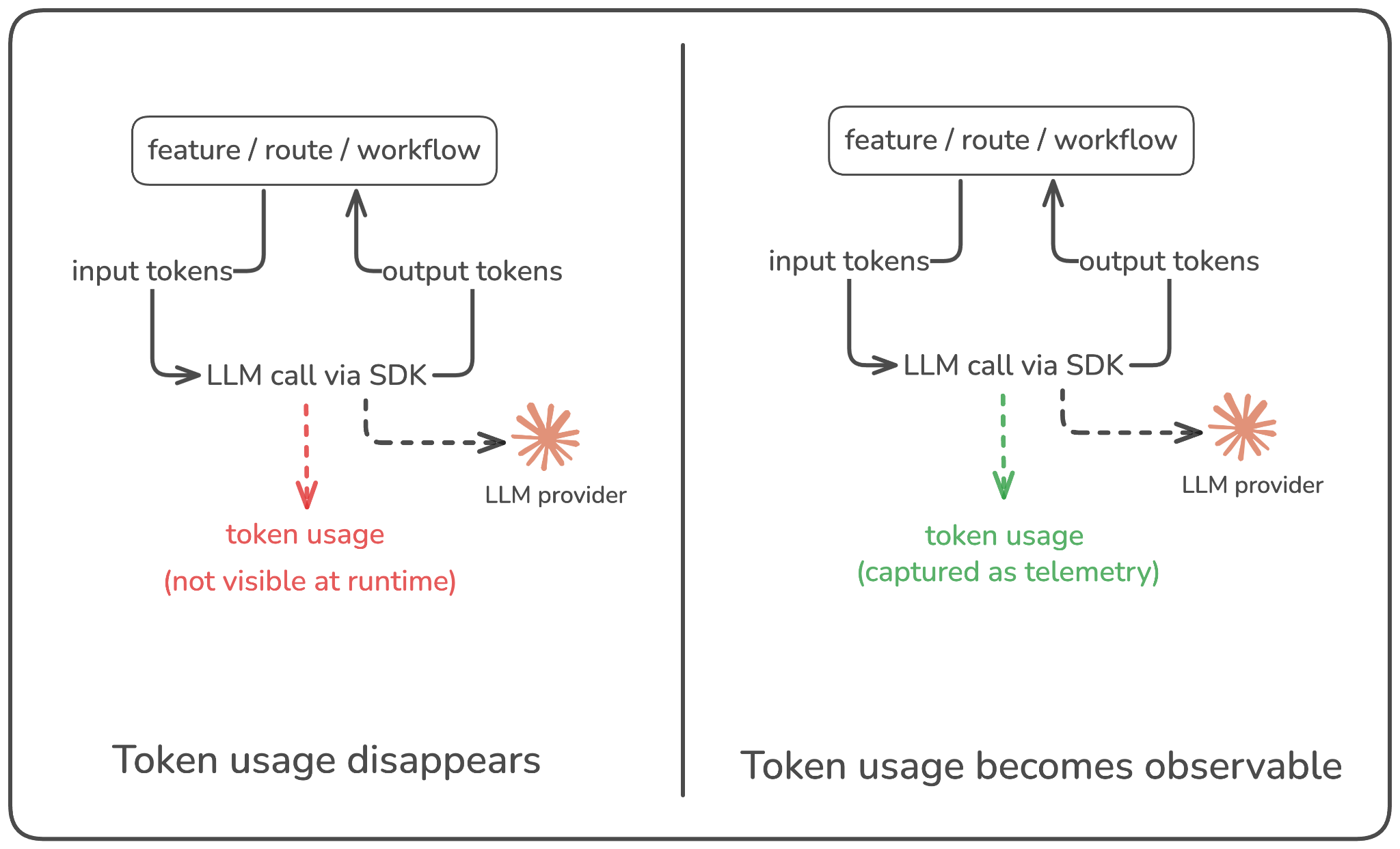 As we saw in the previous post, GenAI breaks this model. The signals that actually drive cost: token usage, model selection, retries, prompt structure, rarely show up in standard observability pipelines, leaving teams with outcomes but no insight into the behavior that produced them.